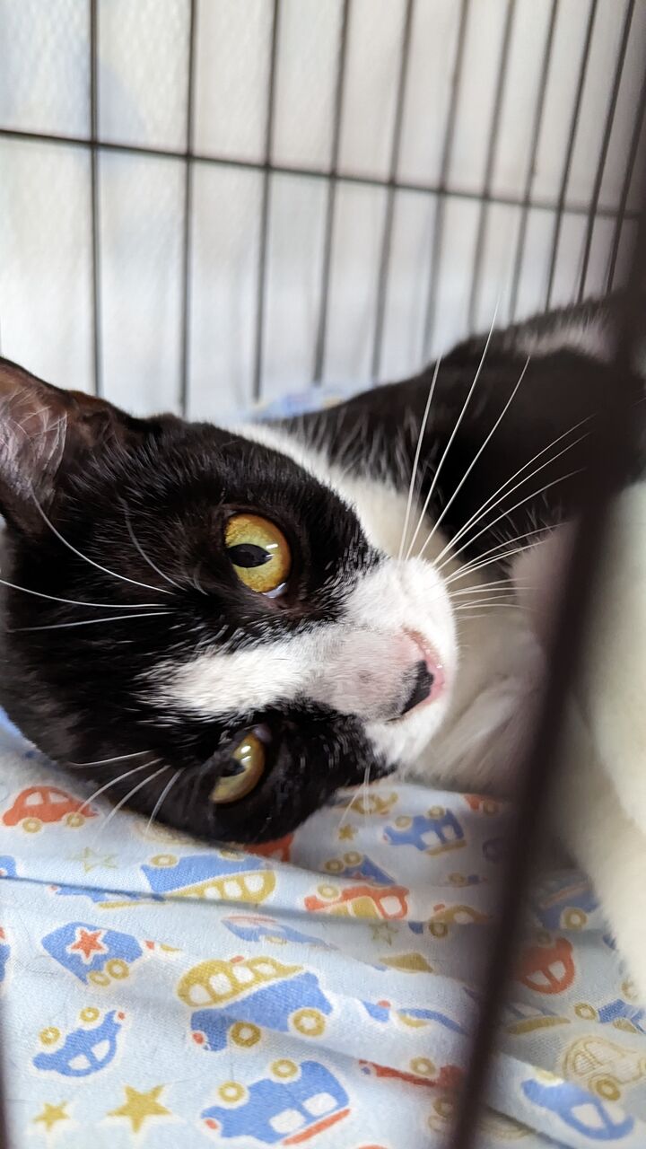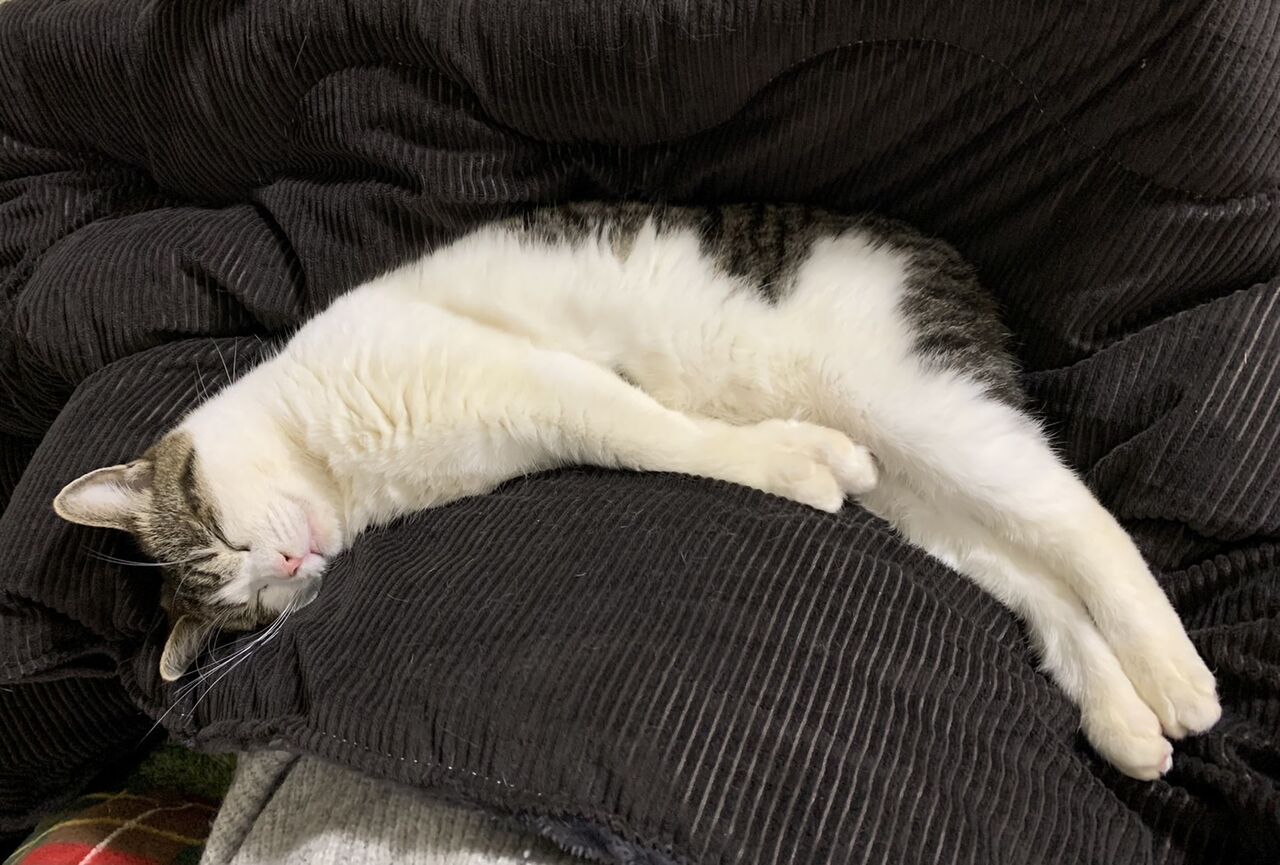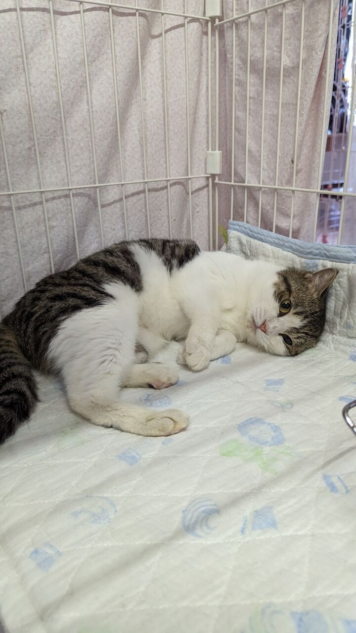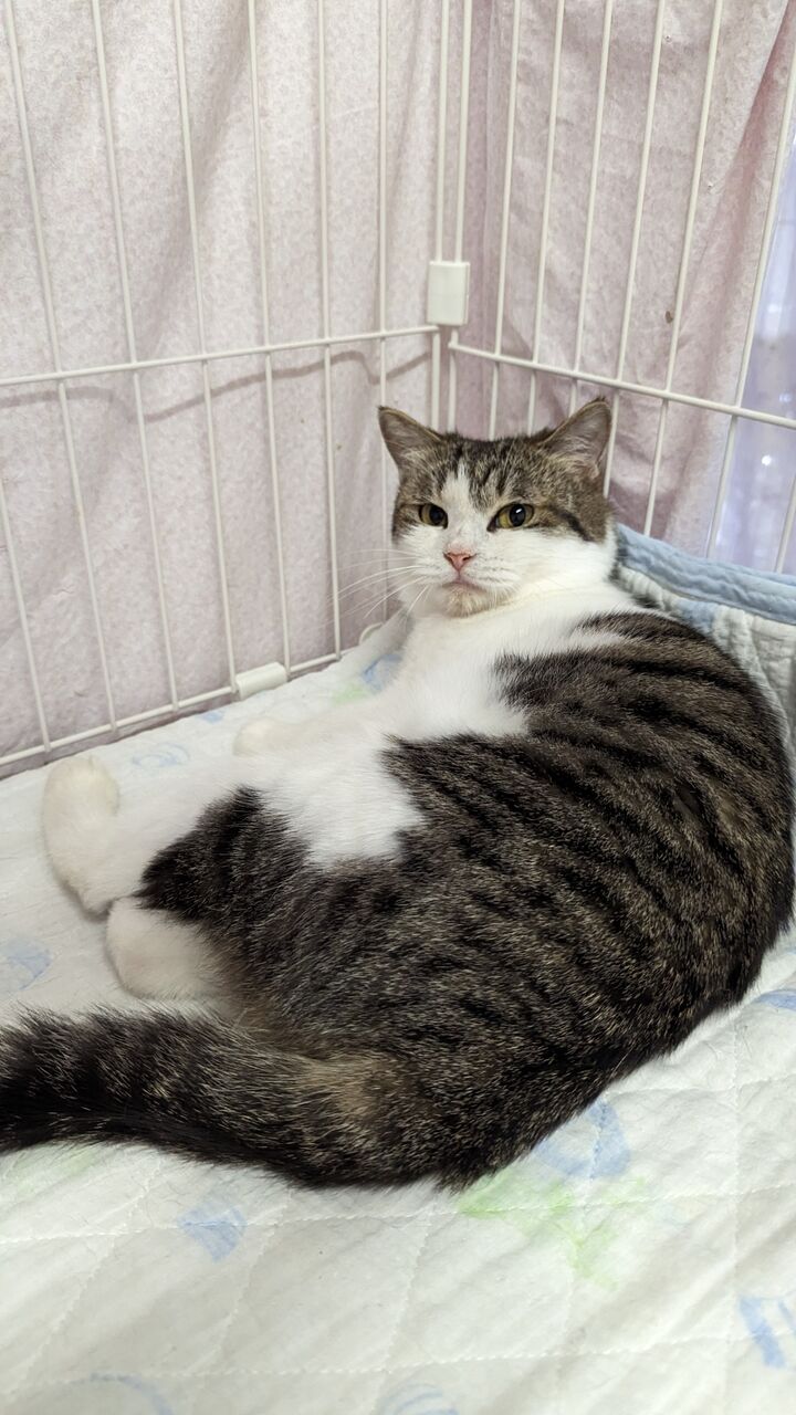 近況:家の中の全ての部屋の探検を終え、堂々とした佇まいになってきたように思います。夜は私の布団の中に入って一緒に寝ています。来客にビビッて逃げ隠れていましたが、