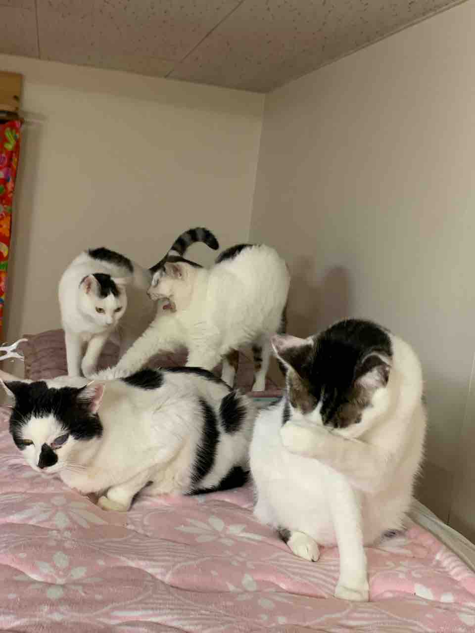 引き取りを名乗り出ておられる方が、私生活をTwitterやInstagramにて自ら投稿し紹介されています。現在、既に親猫4匹と子猫2匹、そして豚1頭の多頭飼いの状況です(多頭飼いでも不妊手術はしていない様子です)。SNSの投稿画像や動画を見る限り、衛生環境が気になります。誤食や喫煙による副流煙など、問題があるように見えます。何かトラブルがあってからでは遅いので、ぜひ譲渡先の自宅を訪問して目で見て確認してから譲渡を検討していただけないでしょうか。